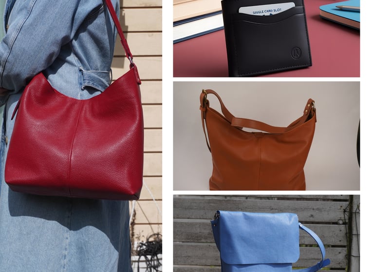 Valmistamme laadukkaita nahkatuotteita, kuten laukkuja ja lompakoita, käsityönä pienessä työpajassamme.